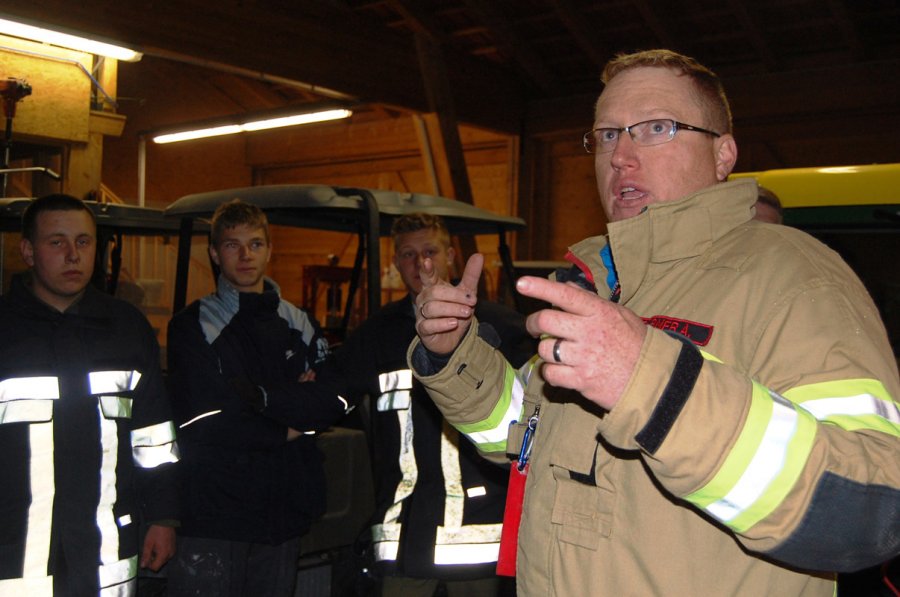 Nach Beendigung der Übung erläuterte HFM Andreas Grabner im Zuge der Nachbesprechung das Gebäude und wies auf möglichen Gefahren wie zum Beispiel ein großes Treibstofflager, Chemielager etc. hin. Die Feuerwehr Mieming bedankt sich auf diesem Wege recht herzlich für das zur Verfügung gestellte Übungsobjekt sowie der Aufarbeitung danach.