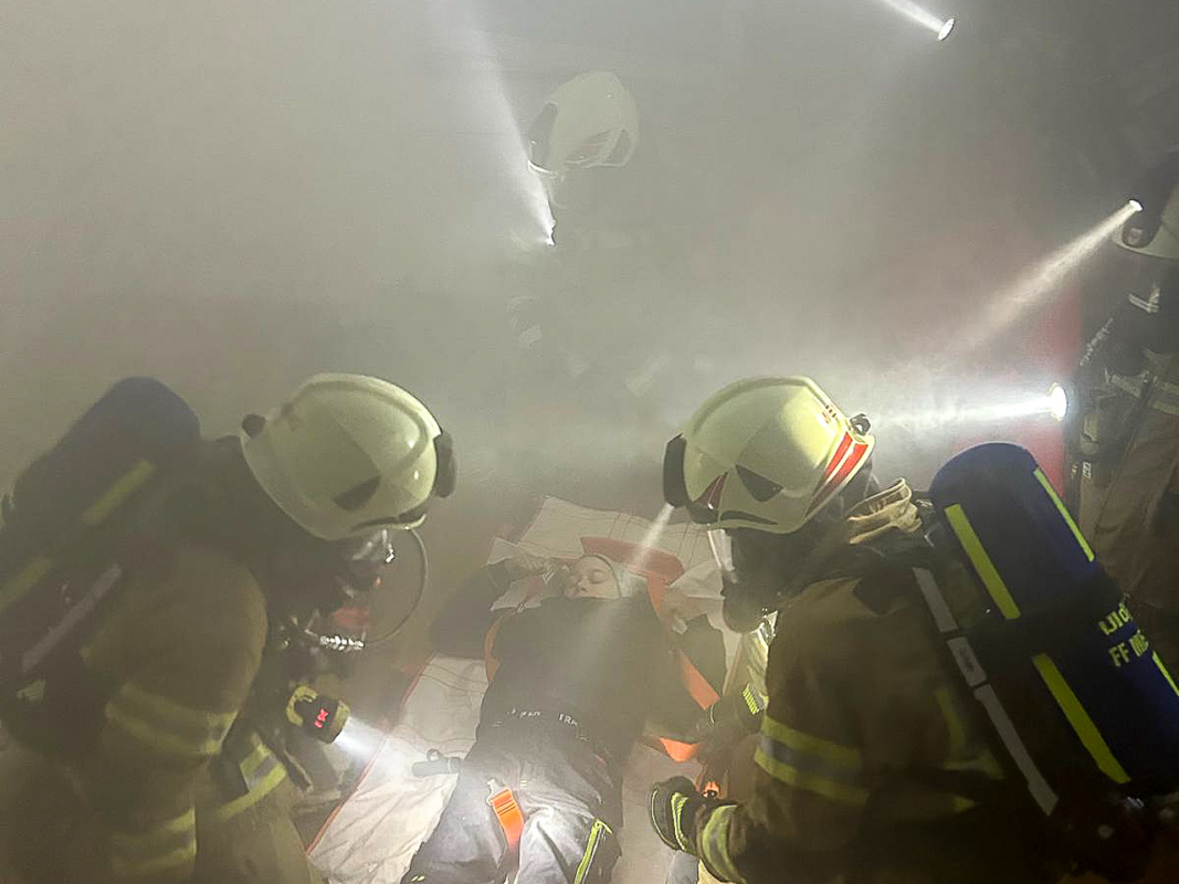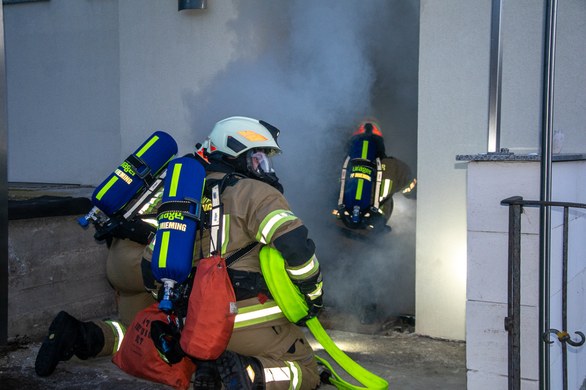 Das Übungsszenario war ein brennendes Gebäude, mehrere vermisste und eingeschlossene Personen, sowie das Übergreifen der Flammen auf benachbarte Gebäude. Zwei Atemschutztrupps konnten in kürzester Zeit 6 vermisste Personen aus dem Haus retten. Währenddessen befreite ein weiterer Teil der Mannschaft eine, unter einem Anhänger eingeklemmte Person mittels Spreizer. Die restlichen Kameraden übernahmen die Wasserversorgung und den Schutz der umliegenden Gebäude.