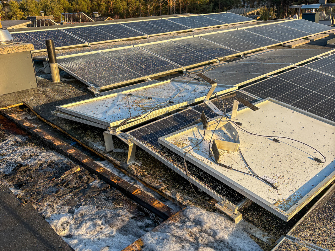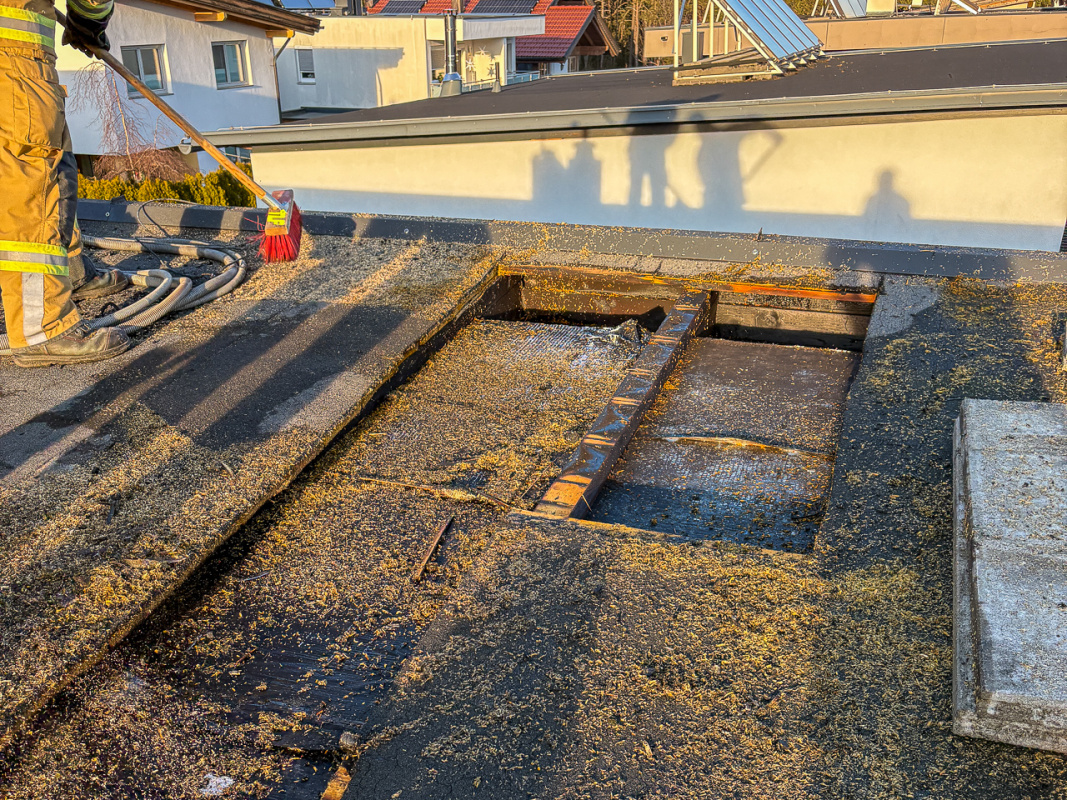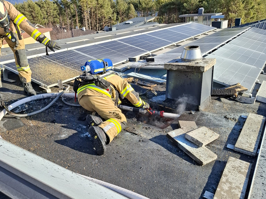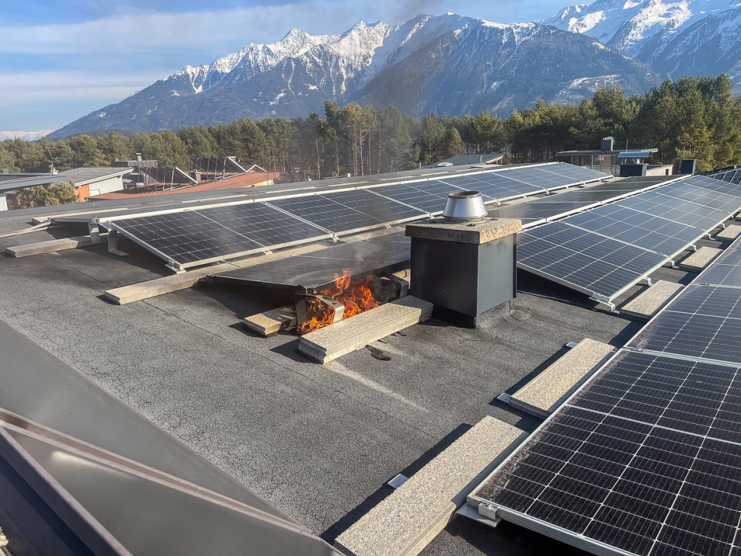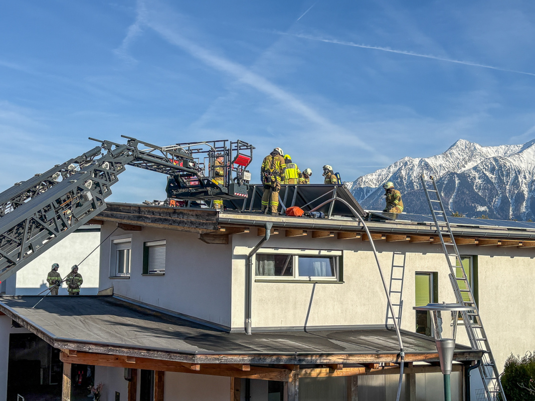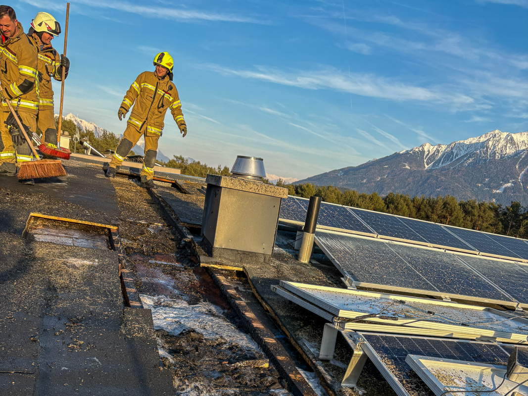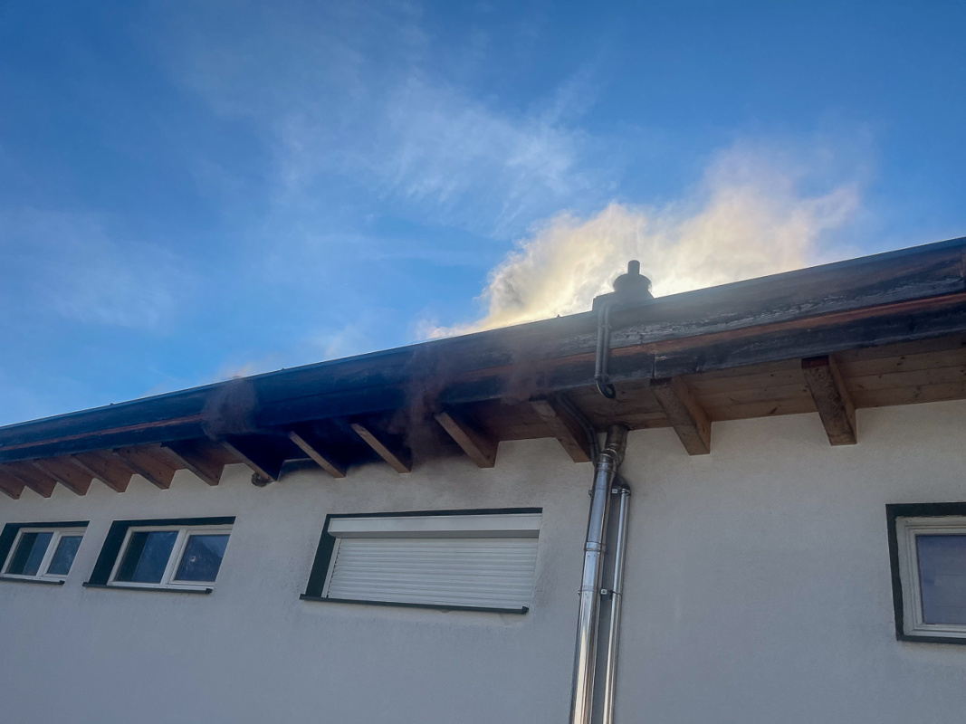Vor Ort war an den Photovoltaikmodulen ein Brandherd sichtbar, welcher bereits auf den Dachstuhl übergegangen war. Für die Nachlöscharbeiten mussten mittels schwerem Atemschutz PV-Module entfernt und ein Teil der Dachhaut geöffnet werden.