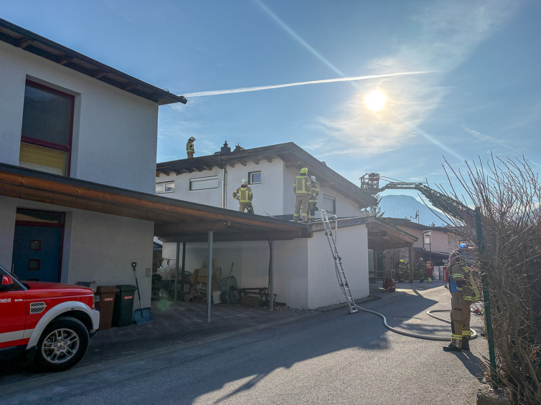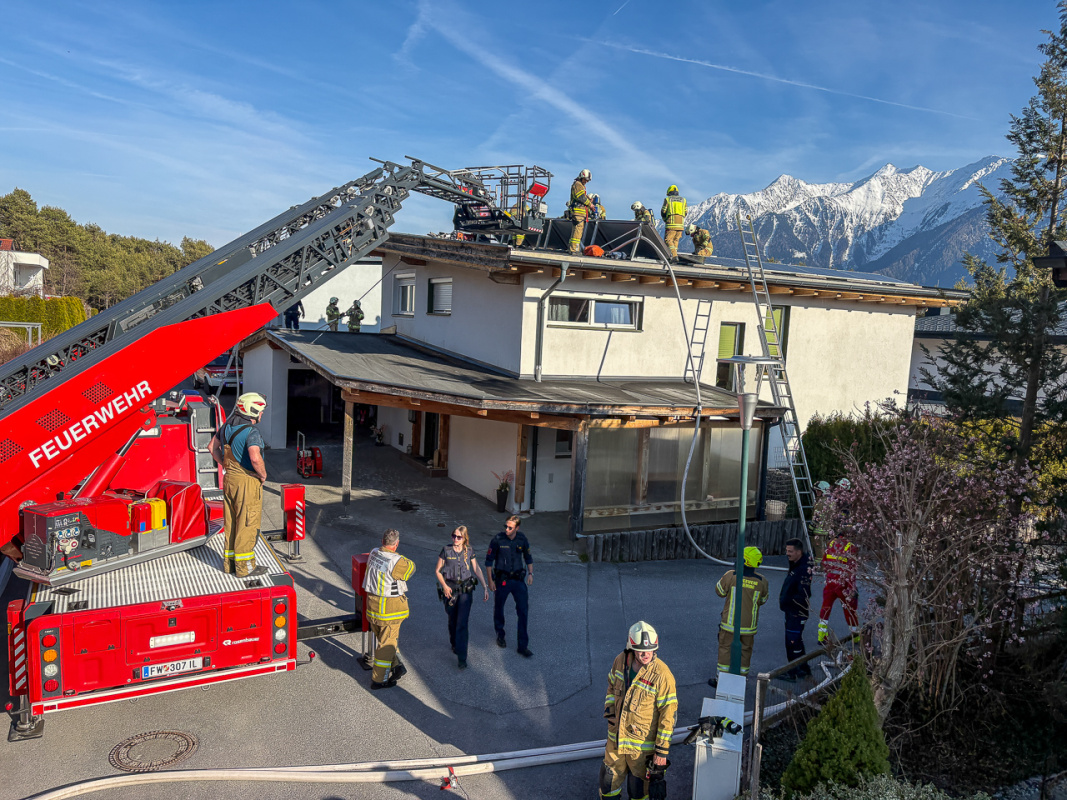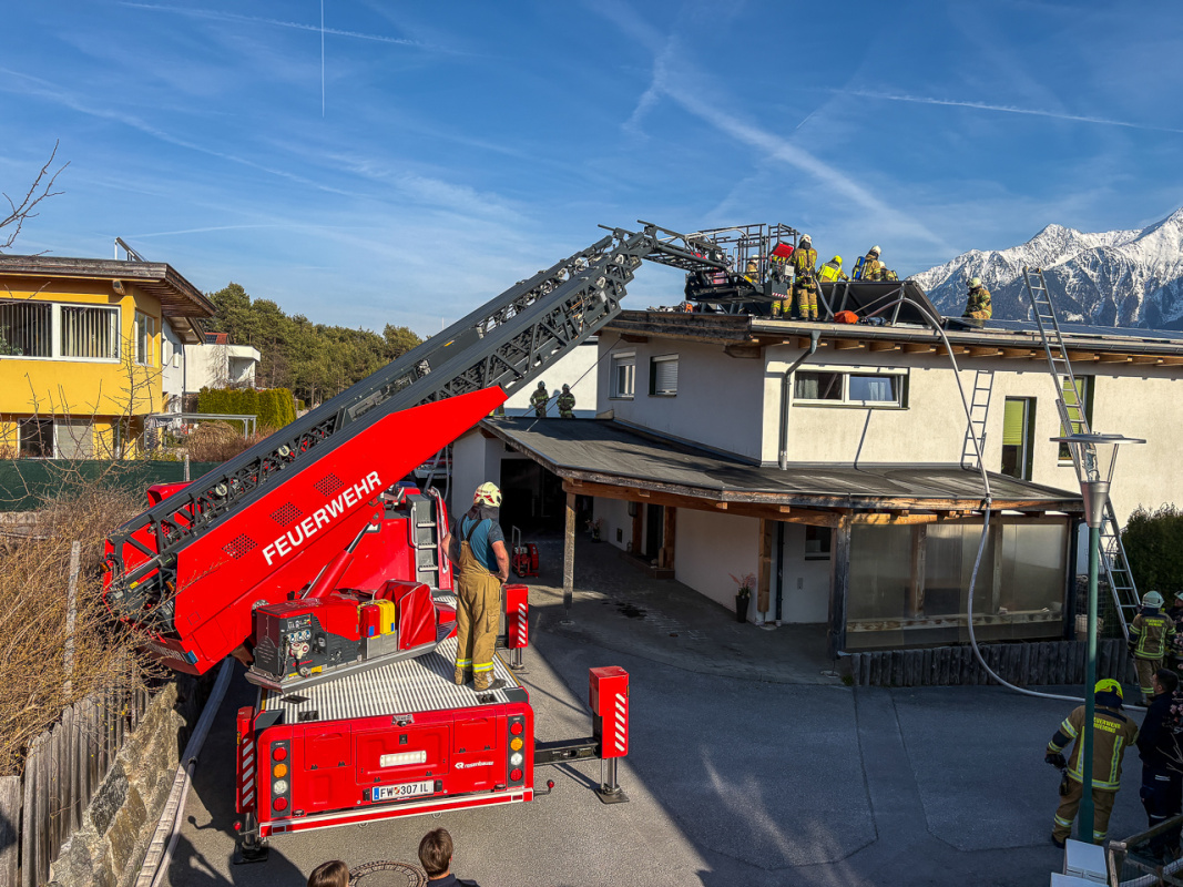 Zu einem „Brand EFH Dachgeschoß“ wurden wir heute um 15:46 Uhr gerufen. Aufgrund des Einsatzcodes wurde auch die Drehleiter der Feuerwehr Telfs alarmiert.