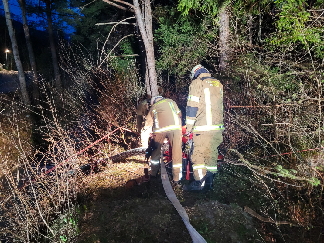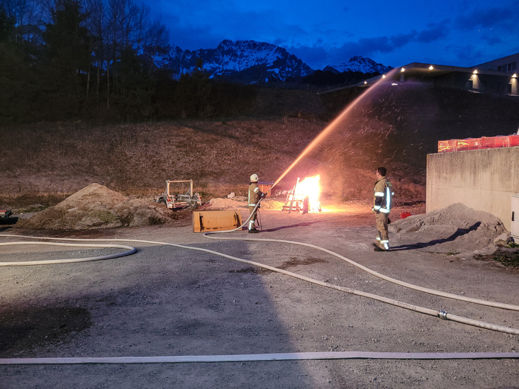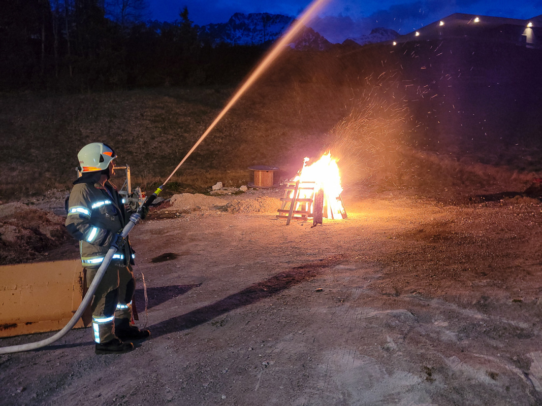 Am Donnerstag, den 9. April, führten die Gruppen Lengg und Zankai gemeinsam eine Übung zum Thema Brand durch. Zur Löschwasserversorgung wurde im nahegelegenen Lehnbach eine Docke gesetzt. Mit dem von der Tragkraftspritze angesaugtem Wasser wurde anschließend das Tanklöschfahrzeug gespeist. Von dort wurde ein Angriff mittels C-Rohr aufgebaut.