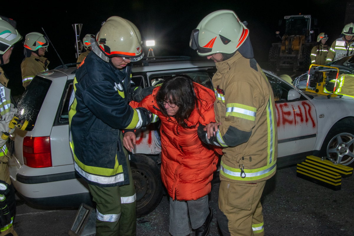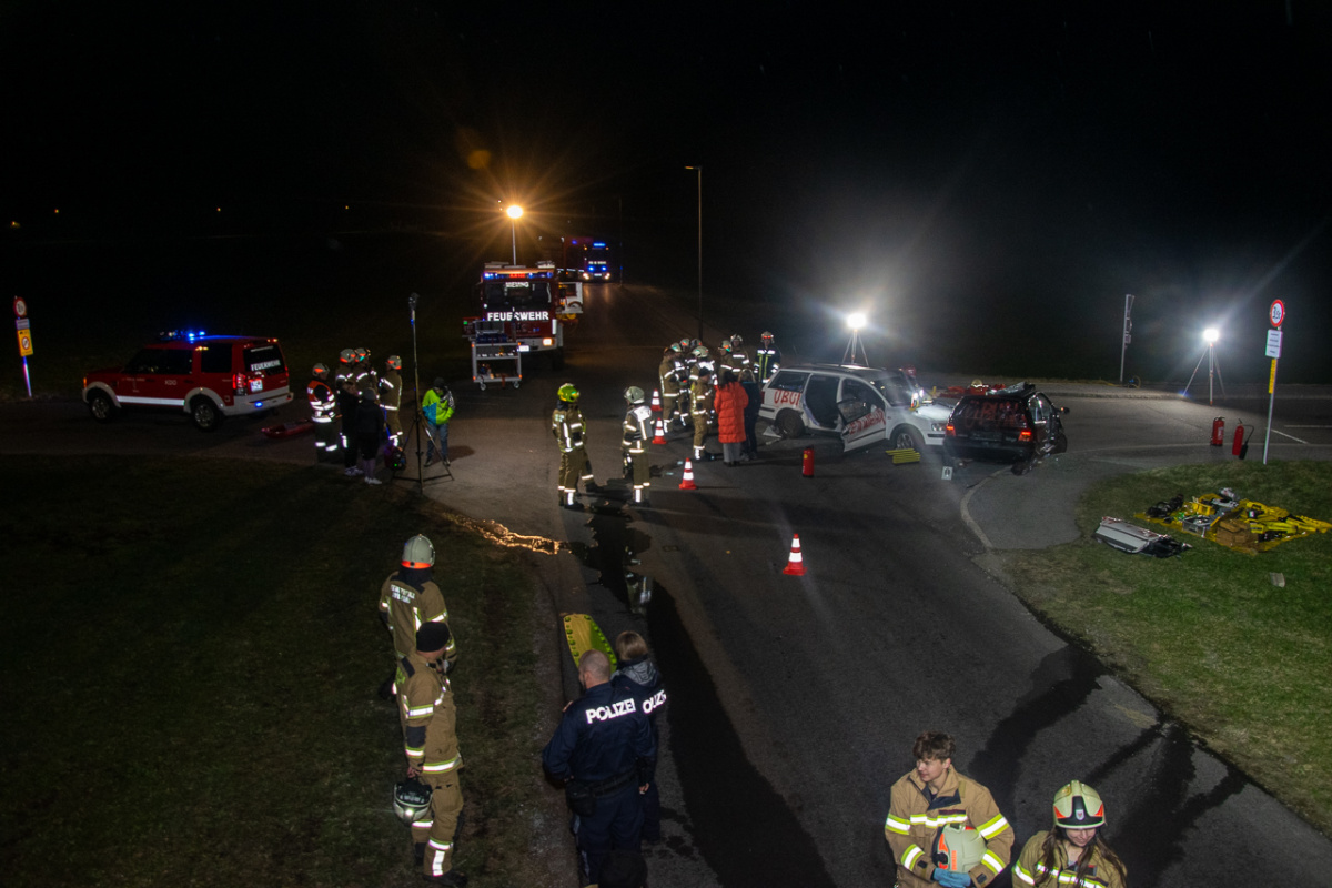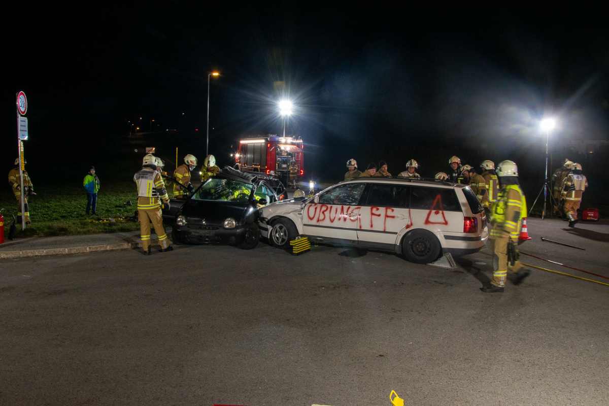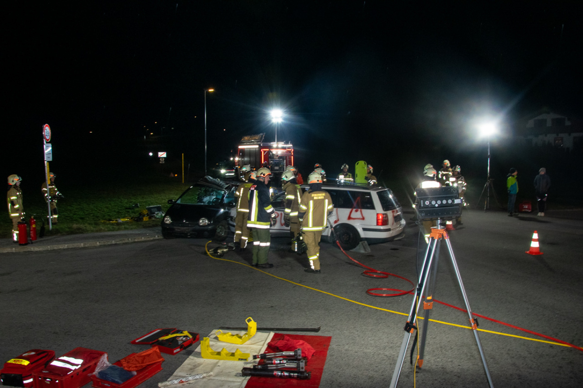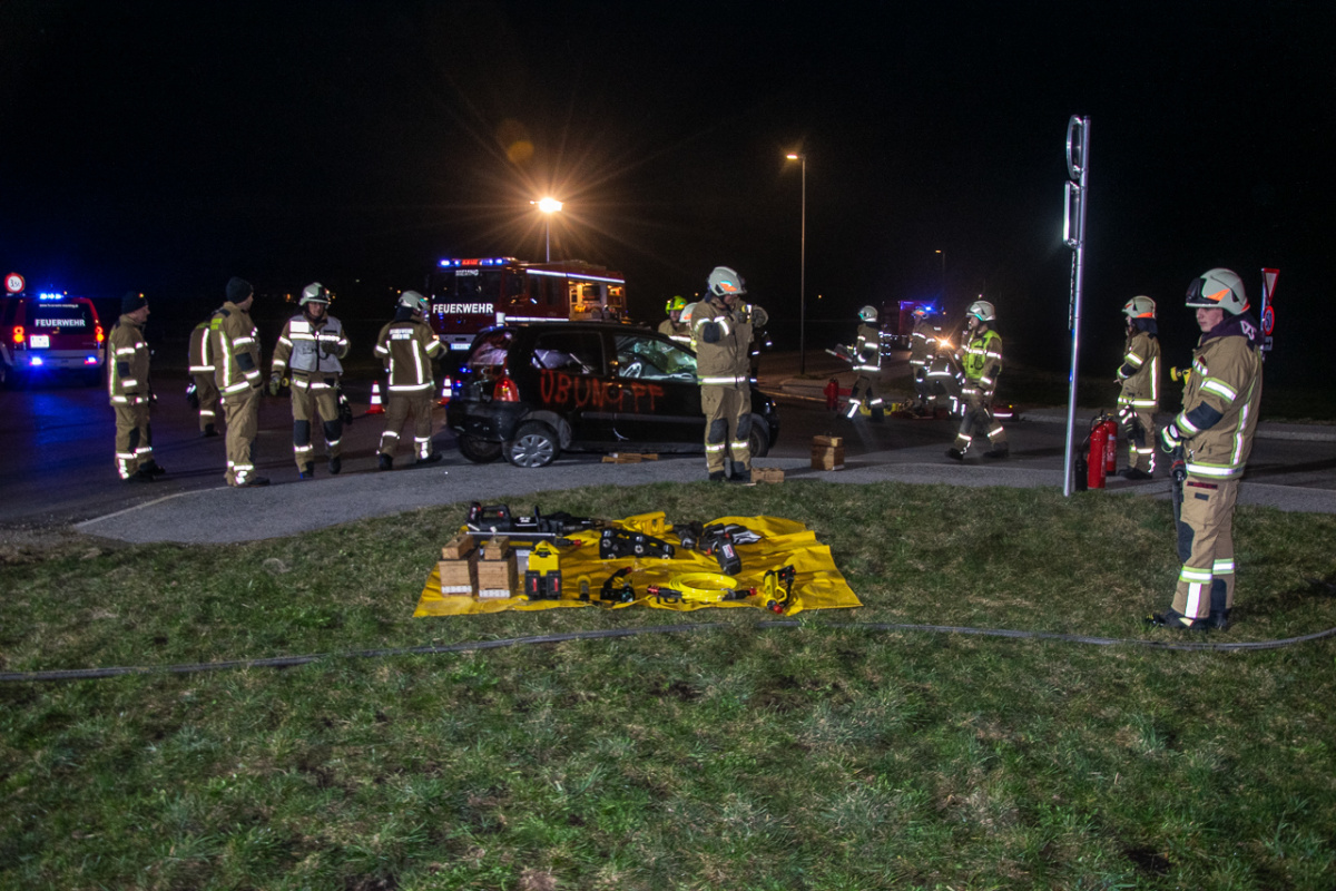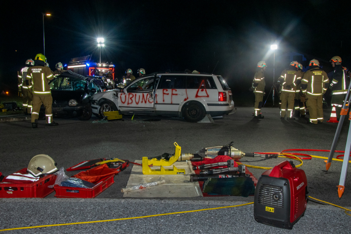 Nach dem Eintreffen am Übungsort erfolgte umgehend die Lageerkundung und Aufgabenverteilung. Es wurden die Beleuchtung, der Brandschutz sowie die Verkehrsregelung aufgebaut. Unter Einsatz der hydraulischen Rettungsgeräte des RLF und LFB konnten die verunfallten Personen rasch und sicher aus den Fahrzeugen geborgen werden.