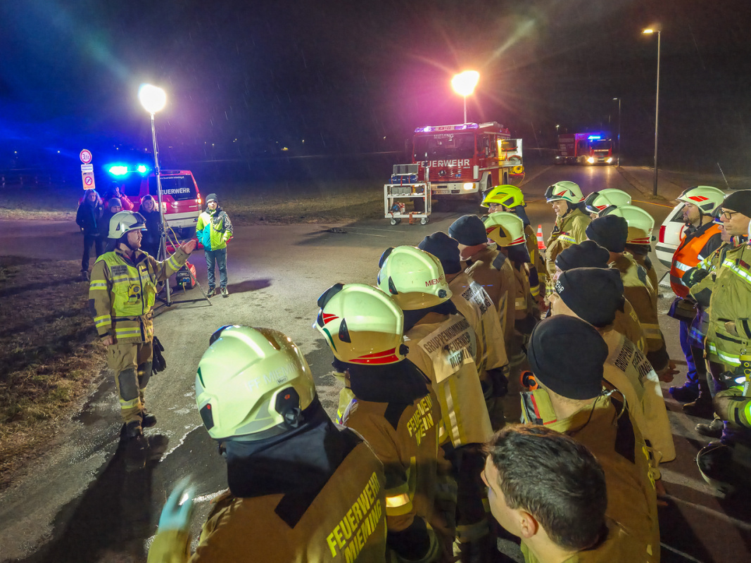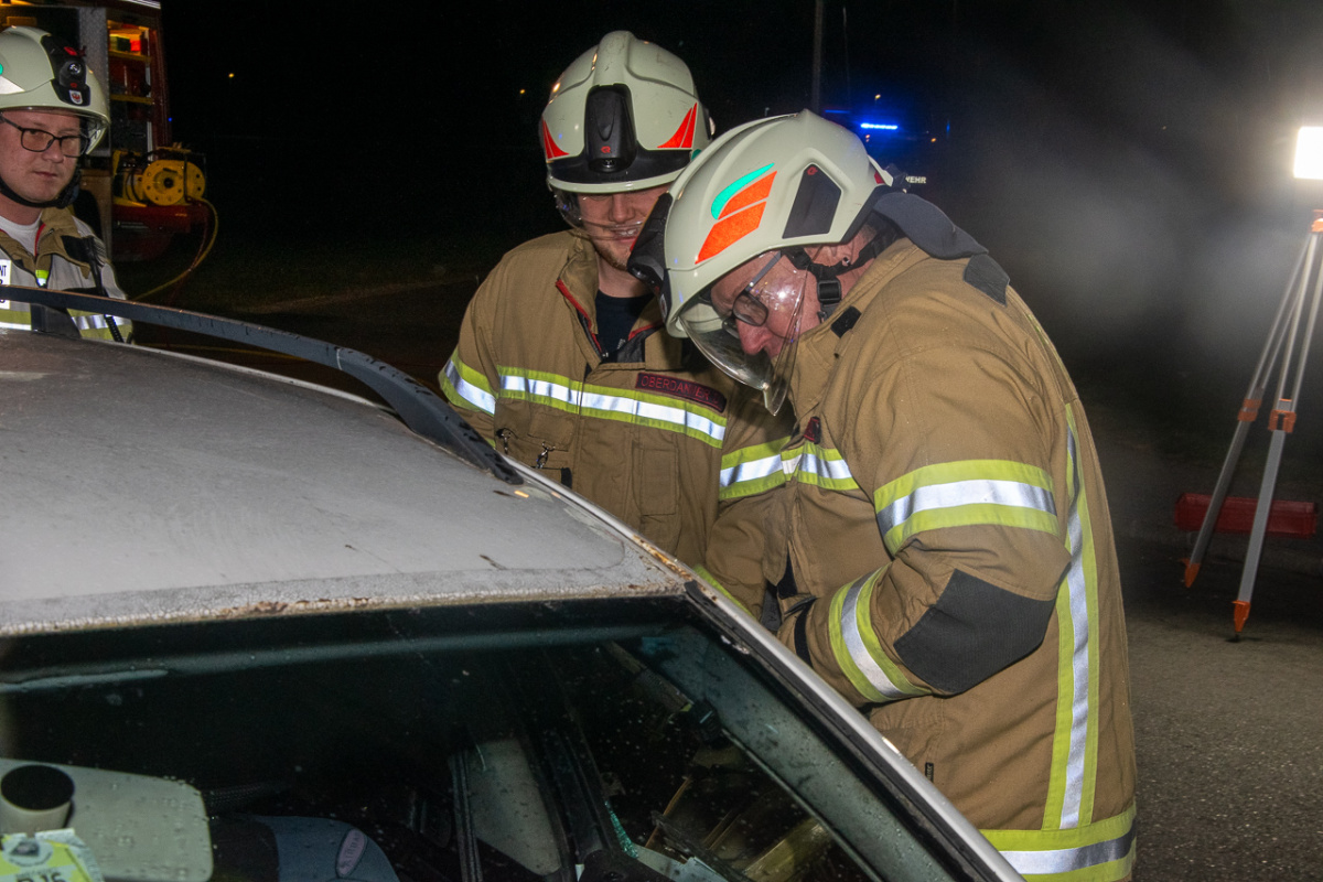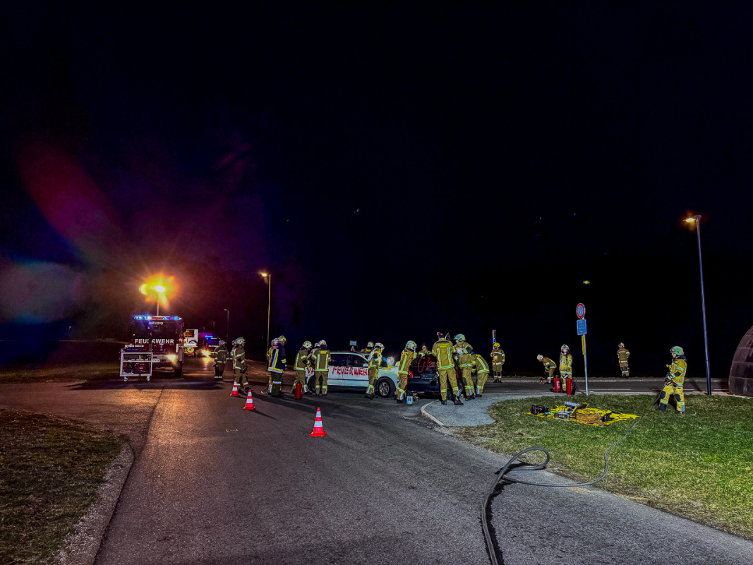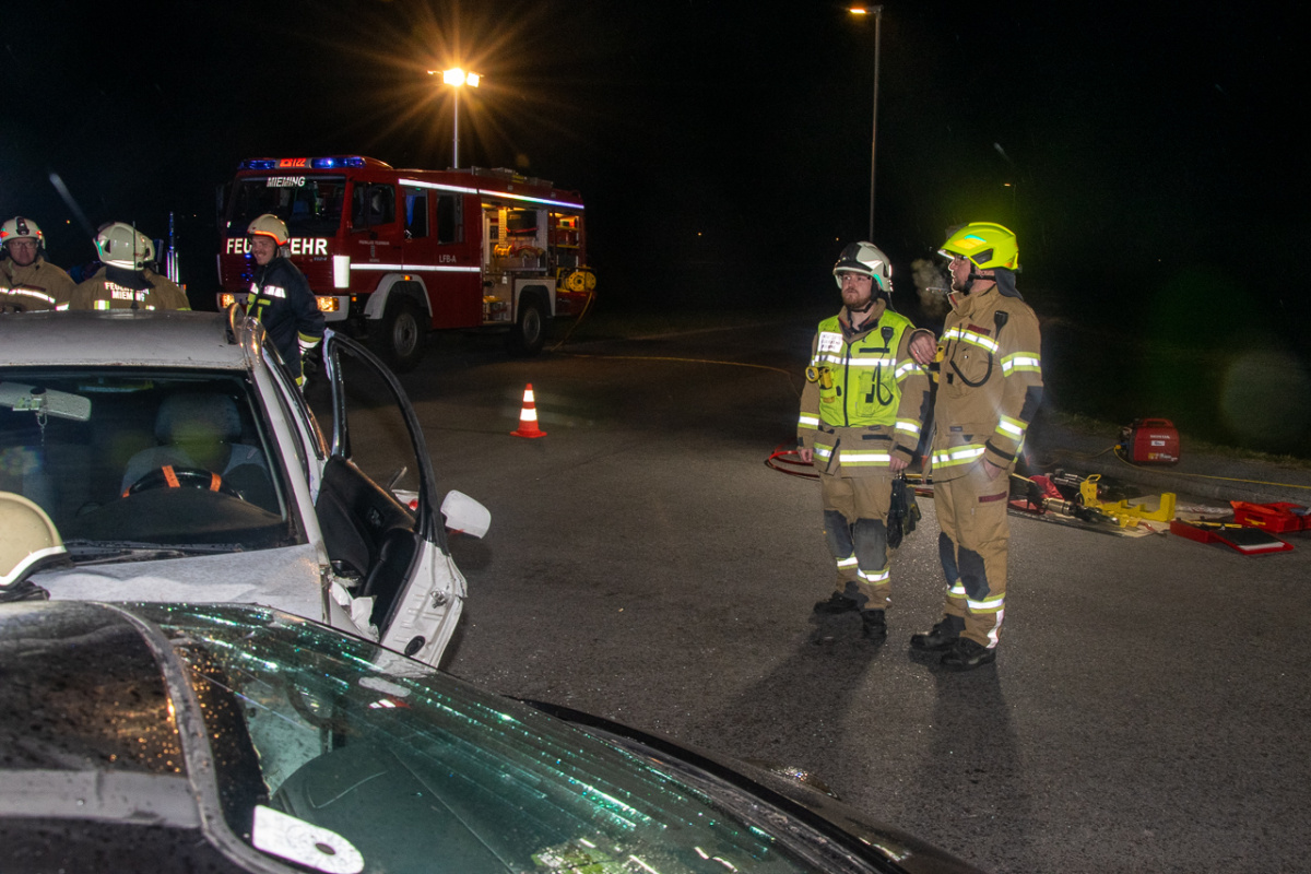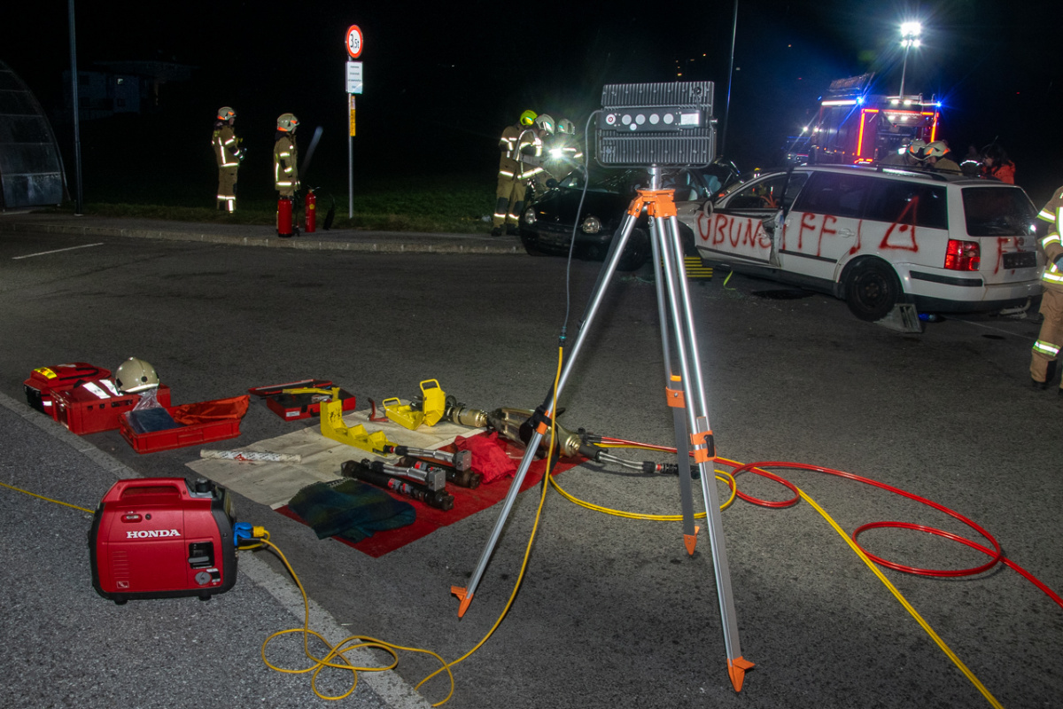 Nach dem Eintreffen am Übungsort erfolgte umgehend die Lageerkundung und Aufgabenverteilung. Es wurden die Beleuchtung, der Brandschutz sowie die Verkehrsregelung aufgebaut. Unter Einsatz der hydraulischen Rettungsgeräte des RLF und LFB konnten die verunfallten Personen rasch und sicher aus den Fahrzeugen geborgen werden.