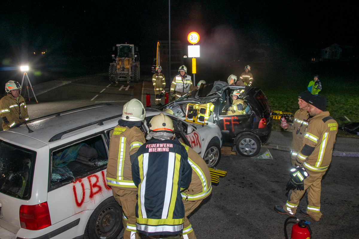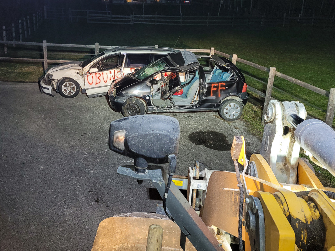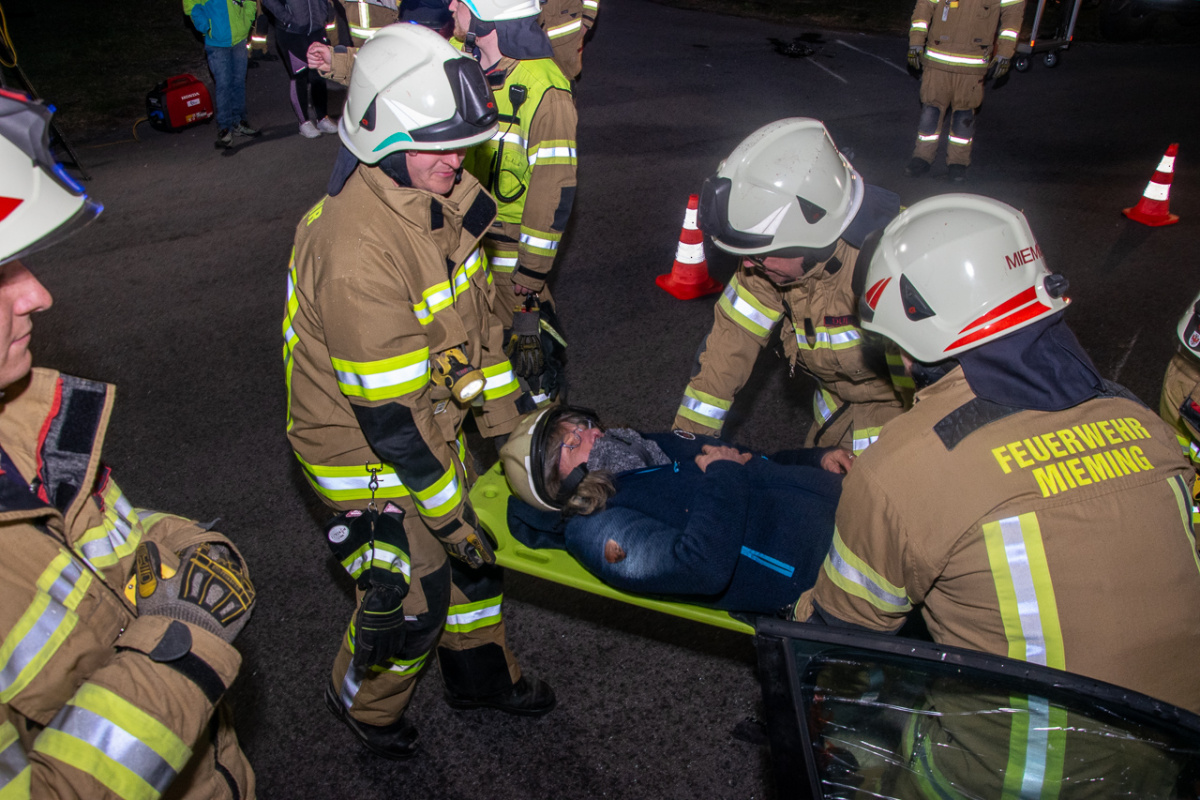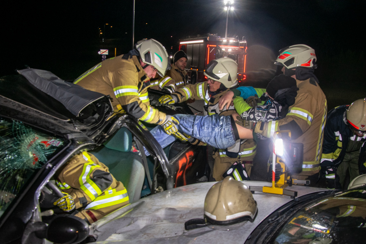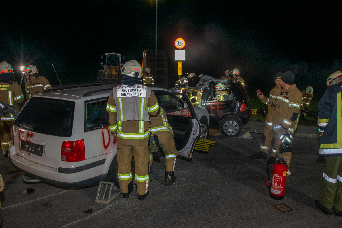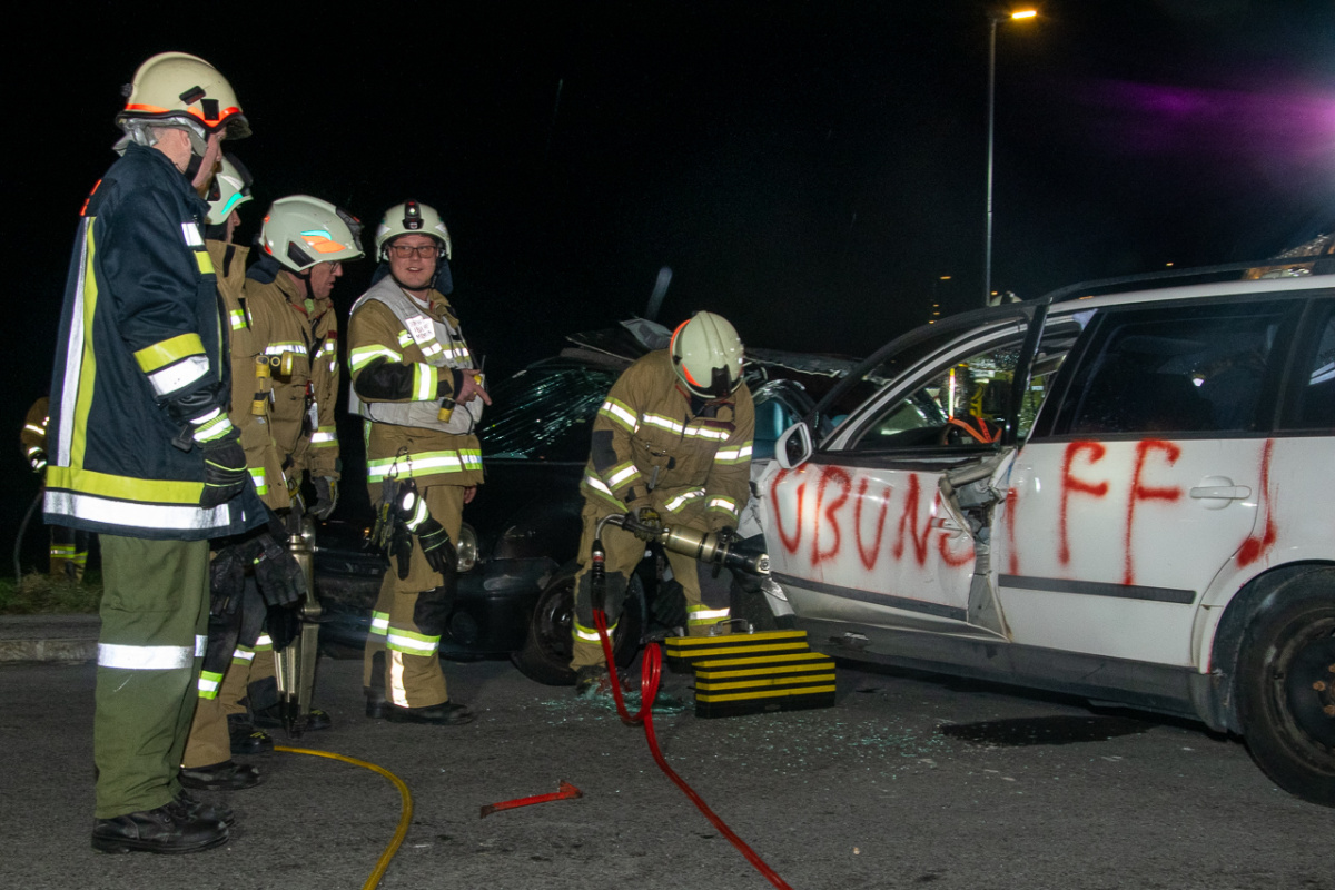 Nach dem Eintreffen am Übungsort erfolgte umgehend die Lageerkundung und Aufgabenverteilung. Es wurden die Beleuchtung, der Brandschutz sowie die Verkehrsregelung aufgebaut. Unter Einsatz der hydraulischen Rettungsgeräte des RLF und LFB konnten die verunfallten Personen rasch und sicher aus den Fahrzeugen geborgen werden.