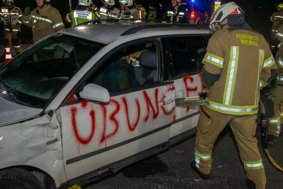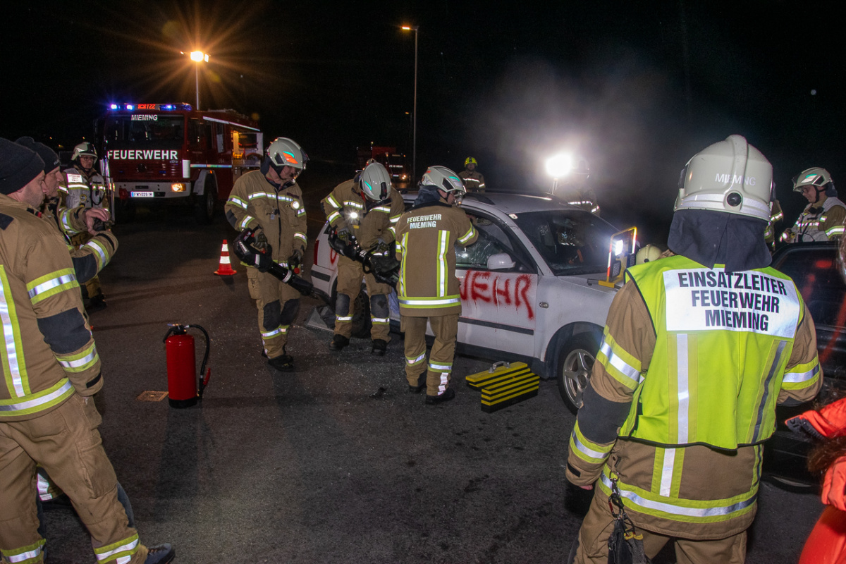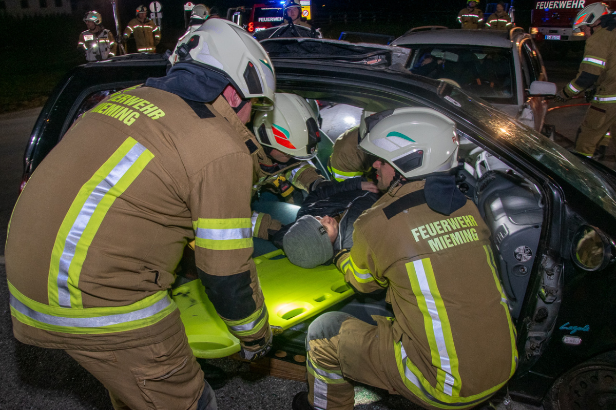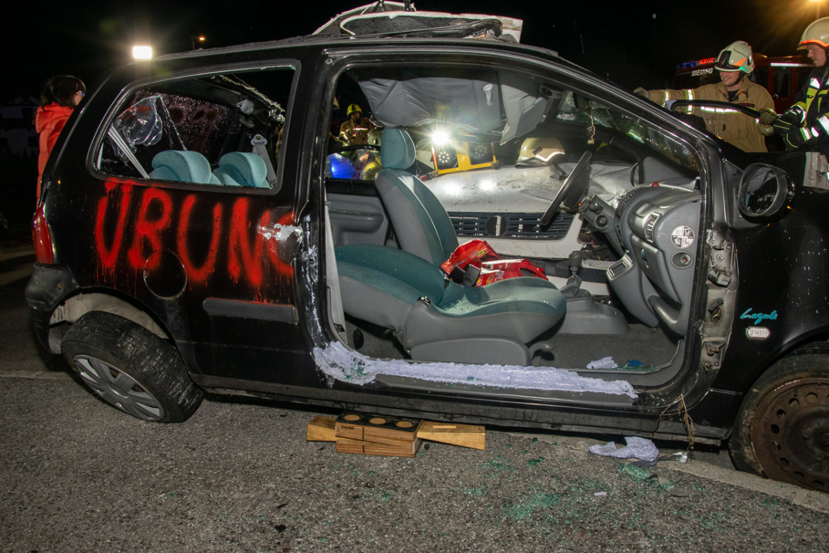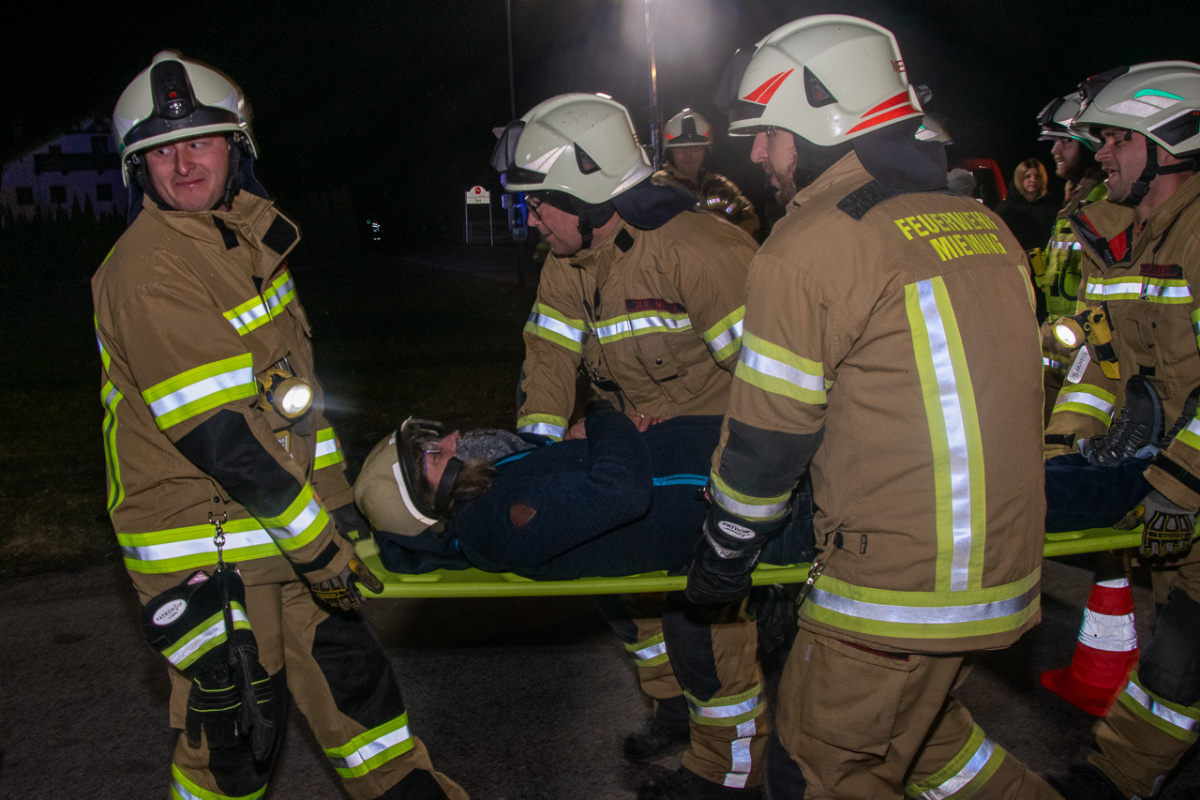 Nach dem Eintreffen am Übungsort erfolgte umgehend die Lageerkundung und Aufgabenverteilung. Es wurden die Beleuchtung, der Brandschutz sowie die Verkehrsregelung aufgebaut. Unter Einsatz der hydraulischen Rettungsgeräte des RLF und LFB konnten die verunfallten Personen rasch und sicher aus den Fahrzeugen geborgen werden.
