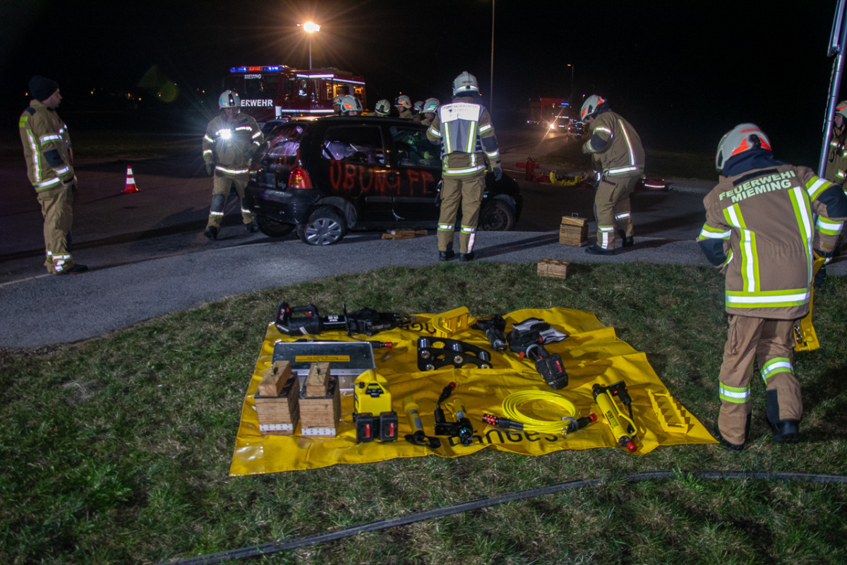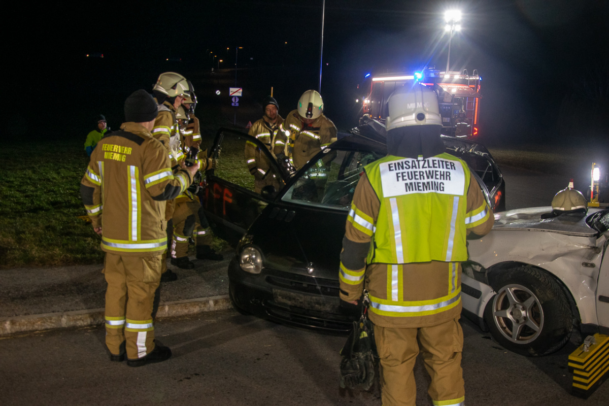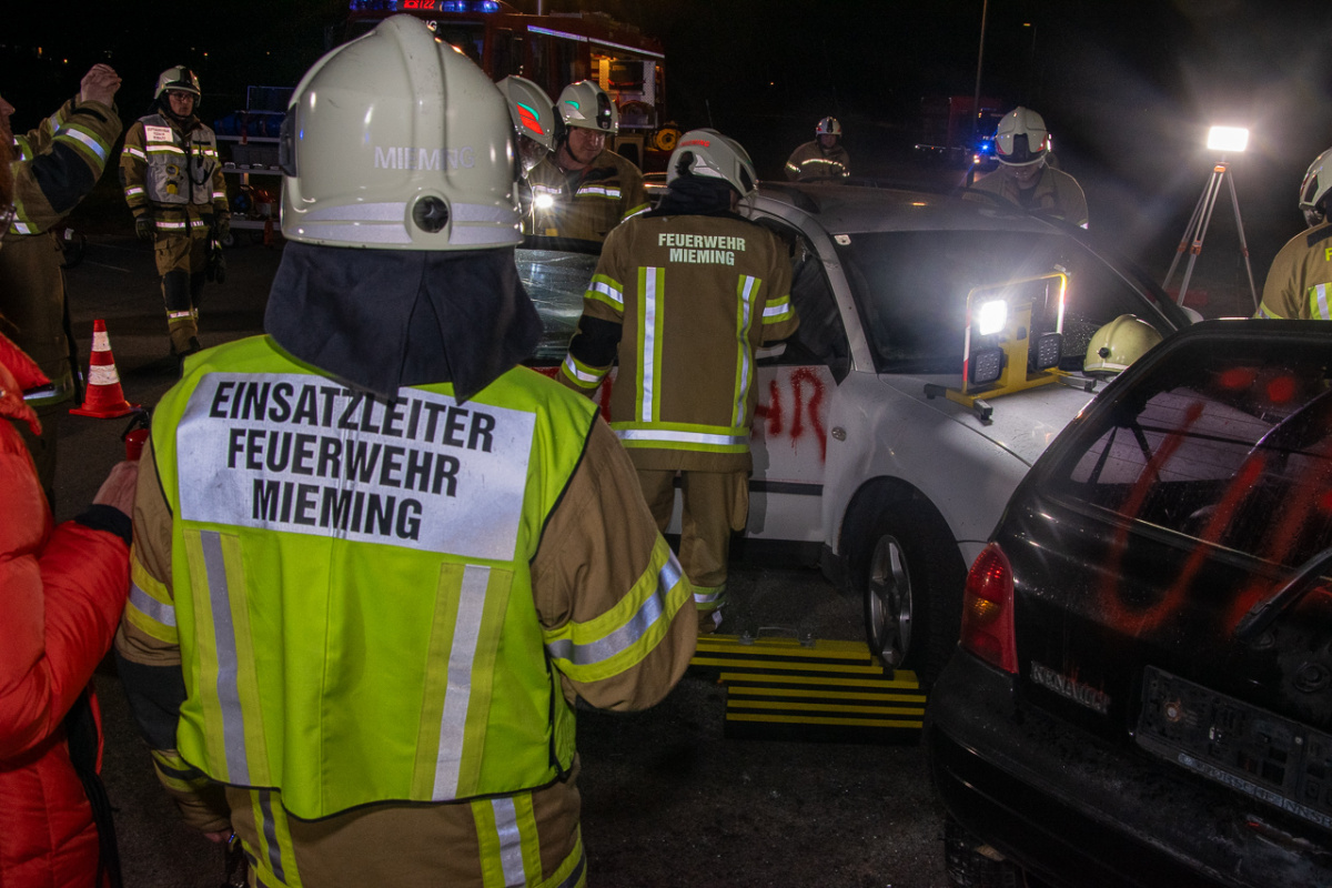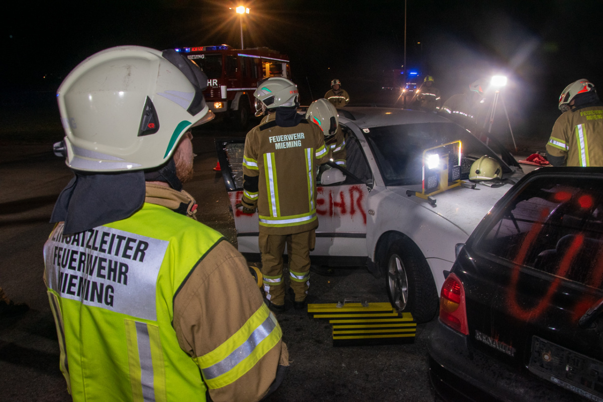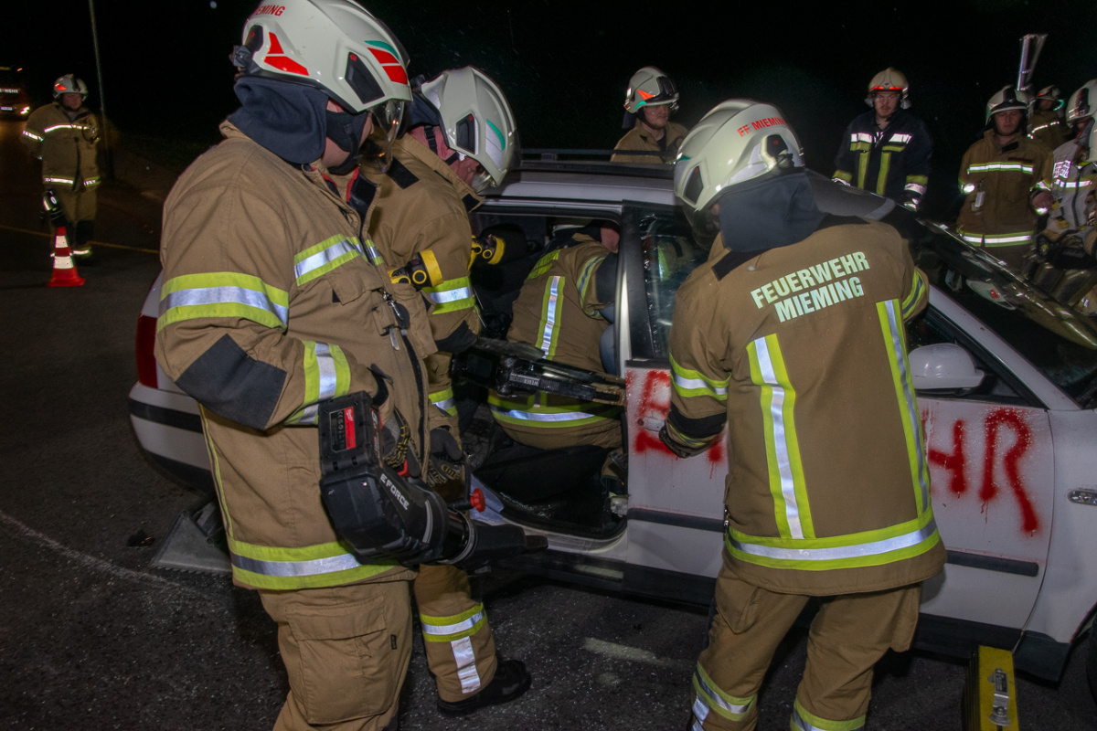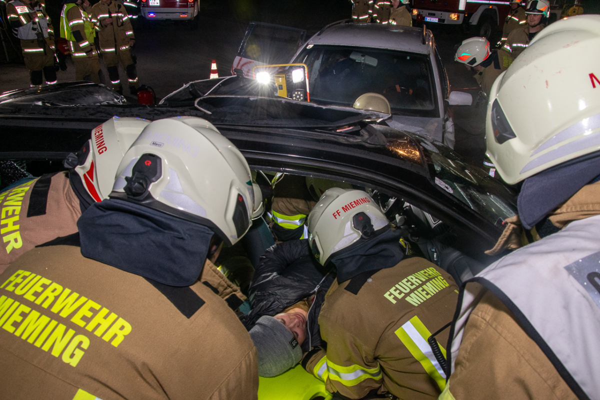Nach dem Eintreffen am Übungsort erfolgte umgehend die Lageerkundung und Aufgabenverteilung. Es wurden die Beleuchtung, der Brandschutz sowie die Verkehrsregelung aufgebaut. Unter Einsatz der hydraulischen Rettungsgeräte des RLF und LFB konnten die verunfallten Personen rasch und sicher aus den Fahrzeugen geborgen werden.