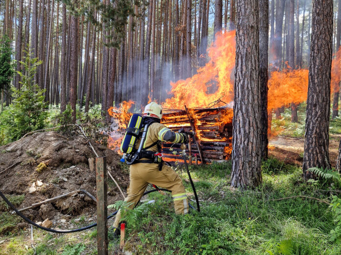 „Brand Kleinobjekt im Freien“ – So wurden wir heute am 9. Juni 2023 um 14:57 Uhr mittels Pager zu einem Einsatz alarmiert. Im Ortsteil Fronhausen war am Waldrand gelagertes Brennholz in Brand geraten. Unter Atemschutz konnte das Feuer rasch gelöscht und nach Kontrolle mit der Wärmebildkamera „Brand aus“ gegeben werden.