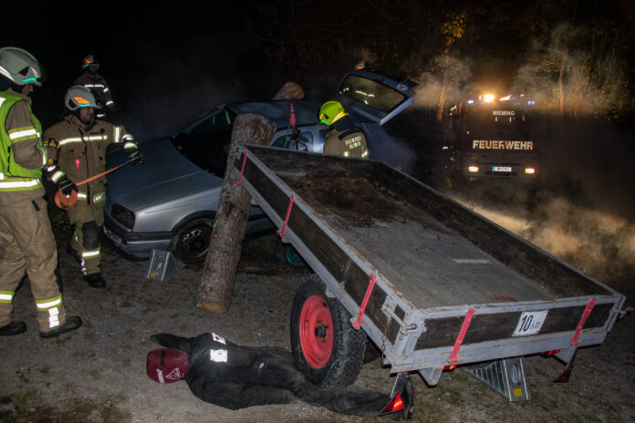 Bei der technischen Übung am 20. Oktober galt es einen Verkehrsunfall, an welchem ein Traktor und ein PKW beteiligt waren, abzuarbeiten.